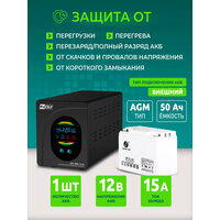 Купить Комплект Линейно-интерактивный ИБП (smart UPS) RUCELF UPI-500-12-I-50 с Аккумулятором, AGM 50 Ач — 12В / 300Вт — 70 мин с доставкой по всей России.