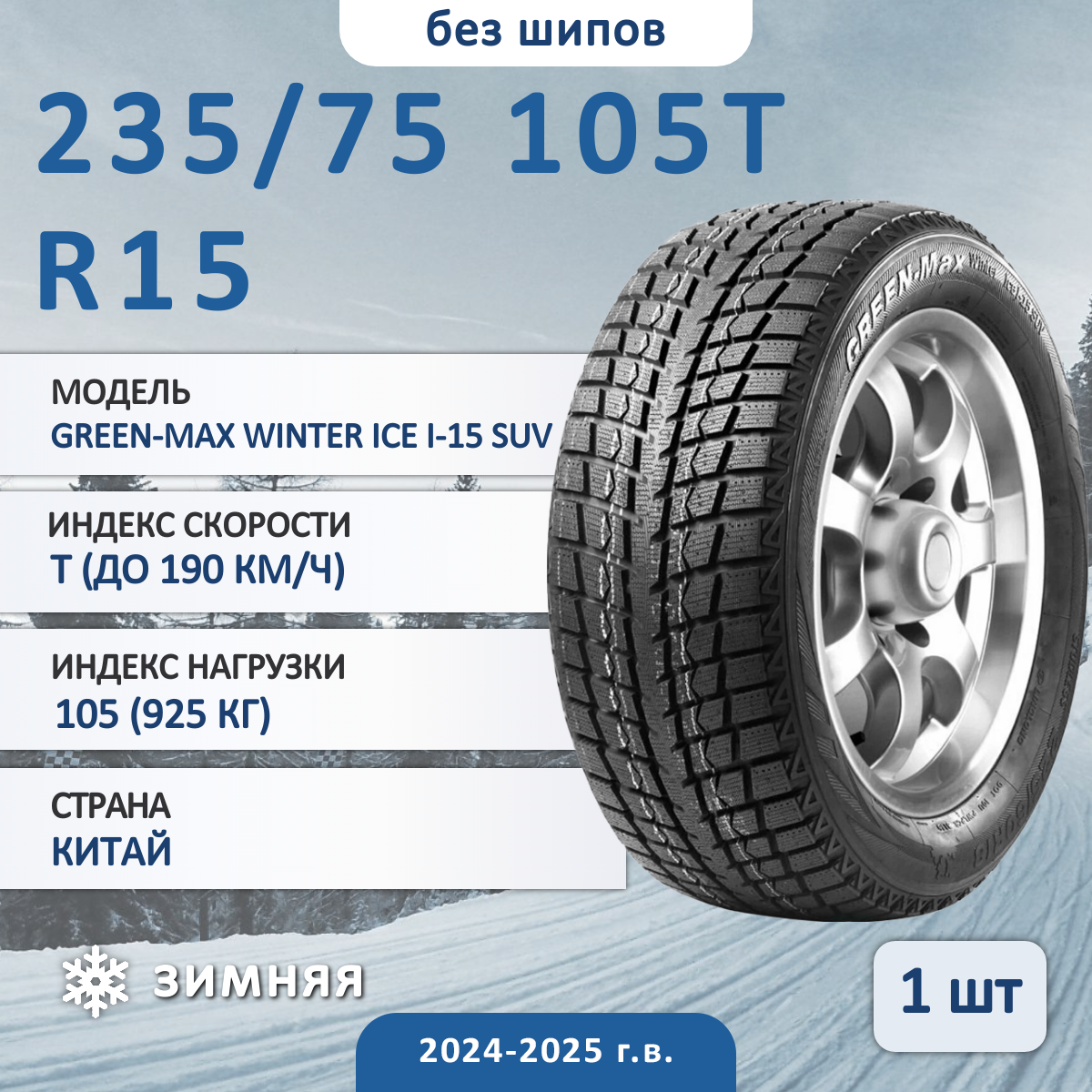 Купить Шина LINGLONG(ЛингЛонг) Green-Max Winter Ice I-15 235/75 R15 105T зимняя автомобильная липучка с доставкой по всей России.