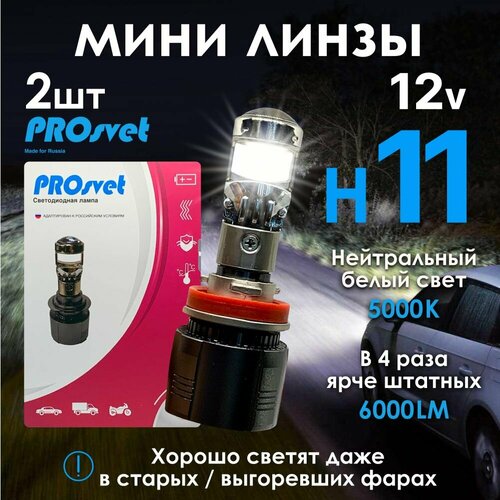 Светодиодные Bi Led линзы H11 Mini LED PROsvet S7 12-24V устанавливаются вместо штатной лампы без разбора фар. Иногда для установки необходимо убрать светоотражающий колпачок из фары. НЕ подойдут в фары с линзованной оптикой. Ближний или дальний свет формируется полусферическим отражателем, отсечкой и линзой минуя отражатель. Благодаря этому достигается равномерная светотеневая граница, которая не слепит встречный поток транспорта, не создает бликов и вспышек. Особенно актуальна такая конструкция для старых фар с выгоревшим отражателем - ведь в этом случае тюнинг света с помощью LED ламп или ксенона невозможно. Главной отличительной особенностью считается необычайно маленький размер устройства. Модель легко справляется со всеми своими функциями, при габаритах всего в 85 миллиметров. Этот аспект упрощает монтаж до минимума. Нет необходимости полного разбора фары, ведь габариты позволят провести упрощенную установку. Если на автомобиле используются фары с рифленным стеклом, то часть его перед линзой необходимо отполировать до гладкого состояния. Этот осветительный прибор проходит тщательное тестирование на функциональную пригодность перед продажей. А также имеет оригинальную упаковку для надежной транспортировки. За охлаждение светодиодов отвечает активный вентилятор и корпус, который выполнен из алюминия