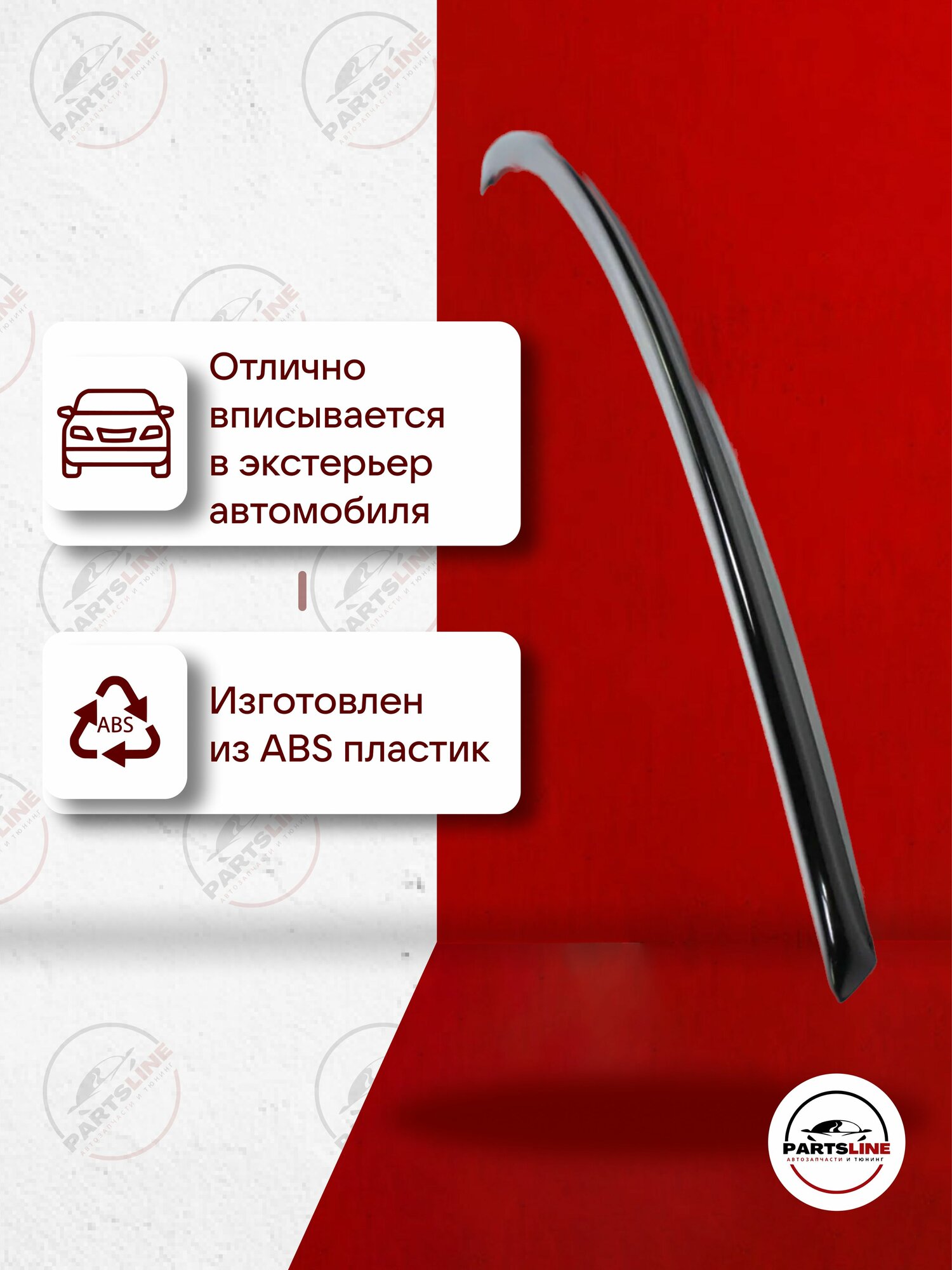 Устанавливается на верхний край крышки багажника на двухсторонний скотч, либо на клей-герметик. Несмотря на небольшие размеры, слегка меняет аэродинамику машины, что важно во время езды на больших скоростях. Цена указана с учетом покраски в черный лак.