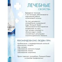 Вода минеральная Липецкий бювет газированная 1.5 литра (6 штук в упаковке). Рекомендована для ежедневного употребления. Добывается в г. Липецк, Скважины № 29/08,12/08. Глубина скважин - 480 м. Общая минерализация 3.0 - 4.5 г/л. Минеральный состав мг/л: бикарбонаты - 200-400, хлориды - 500-850, сульфаты 1200-1700, кальций - <150, магний - <50, натрийкалий - 800-1200. Основные рекомендации для профилактик пищеварительной системы: гастриты, колиты, гепатиты, холециститы, язвенная болезнь, нарушение обмена веществ. Вода изменяет деятельность пищеварительной системы, мягко стимулирует секреторную и моторную функции органов пищеварения. Вода используется также для приготовления целебных ванн. Поставляется в пластиковой бутылке, в одной упаковке 6 бутылок. Хранить в проветриваемых затемненных помещениях при температуре от 5 до 20 °C. Допускается естественный осадок минеральных солей. Страна производства: Россия.