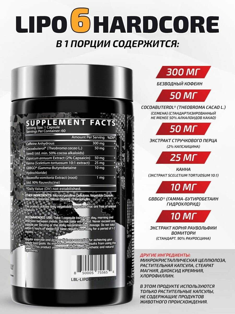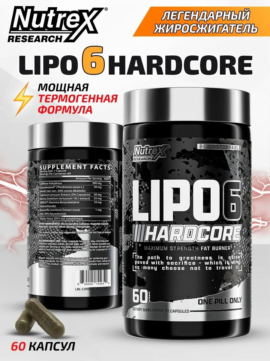 Nutrex Lipo-6 Hardcore, Жиросжигатель для контроля аппетита, 60 капсул, термогеник, для ускорения метаболизма: сравнение цен, характеристики, фото, актуальное наличие и цены.