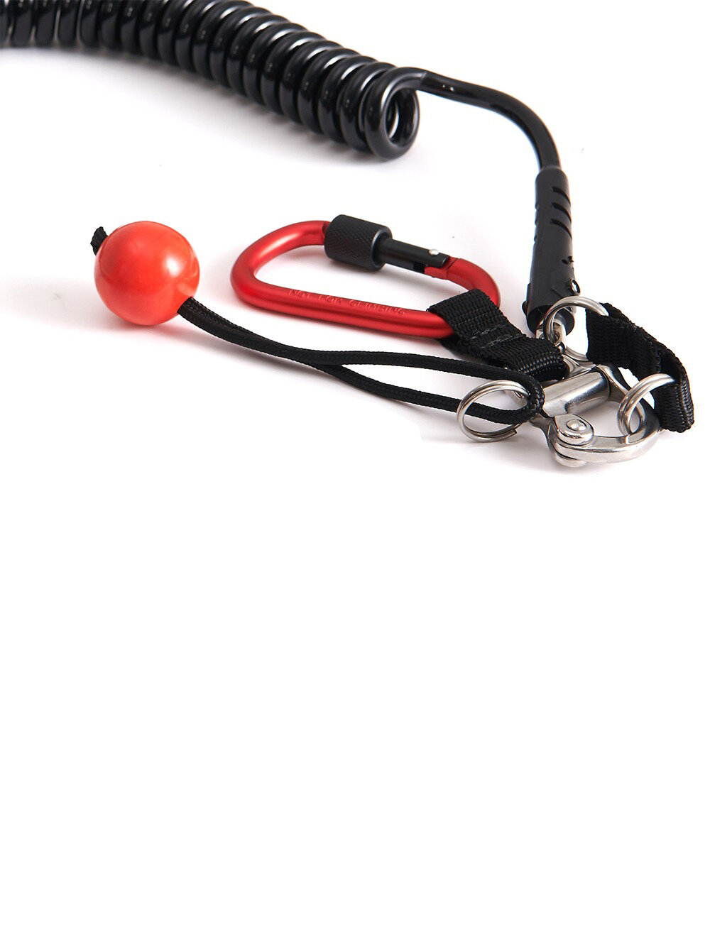 Лиш с чекой безопасности для сплава 2,75 м усиленный витой шнур толщиной 7 мм в нейлоновой оплетке Механизм Quick-release для отстёгивания в случае опасности Армированный стреп на липучке для быстрого крепления к доске Стальные шарниры для максимальной надёжности