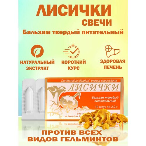 Средства на основе Лисички обыкновенной воздействуют не только на глистов, но и на лямблии, токсоплазму, способствуют активному подавлению грибковых инфекций (аспергилеза, кандидоза и т. д.) путем восстановления иммунной защиты организма. Применяются от паразитов и глистов для человека, для взрослых и детей с 10 лет.