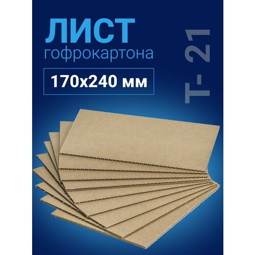 Гофрированный картон относится к листовым упаковочным материалам, бурого цвета и получают его при склеивании между собой плоских и волнообразных слоев картона в соответствии с российскими стандартами - ГОСТ, ТУ и технической документации. Из представленных на потребительском рынке двух-, трёх- и пятислойных видов гофрокартона, самым востребованным является трёхслойный, один из слоёв - волнистый и два – плоских, что придает материалу повышенную прочность. Плоский слой наружный (лайнер) делают из 100% целлюлозы, а внутренний слой (гофролист) состоит из целлюлозы и макулатуры на 75% и 25%, соответственно. Трёхслойный листовой гофрокартон делится на марки: Т-21, Т-22, Т-23, Т-24, (буква «Т» означает три слоя). Каждая марка картона отличается толщиной и плотностью используемой при производстве бумаги. Листы картона Т-21 размером 170х240 мм, толщиной 2-2,5 мм, как самый популярный и не дорогой упаковочный материал, используется практически во всех областях промышленности, Применяется он отдельно как самостоятельная упаковка и, при дополнительной защите, в качестве прослоек между товаром и настилом паллетов, прокладок в коробах, ящиках и т. д, а также как производный материал для упаковочной тары различной по конструкции, для упаковывания не больших по размерам видов товаров промышленного и бытового назначения. В итоге, использование гофрокартона в повседневной жизни и в бизнесе является прекрасным решением при отправке товара покупателям транспортными компаниями и почтой. При этом, клиенты получают товар неповрежденным, а потребители остаются довольны упаковкой за её надежность, нейтральность по отношению к продуктам питания и благоприятное воздействие на окружающую среду. Картон Т-21 – соответствует всем требованиям, которые предъявляют экологи к безопасной упаковке, т. е. экологически чистый материал, без запаха, не токсичен и не выделяет вредных веществ.