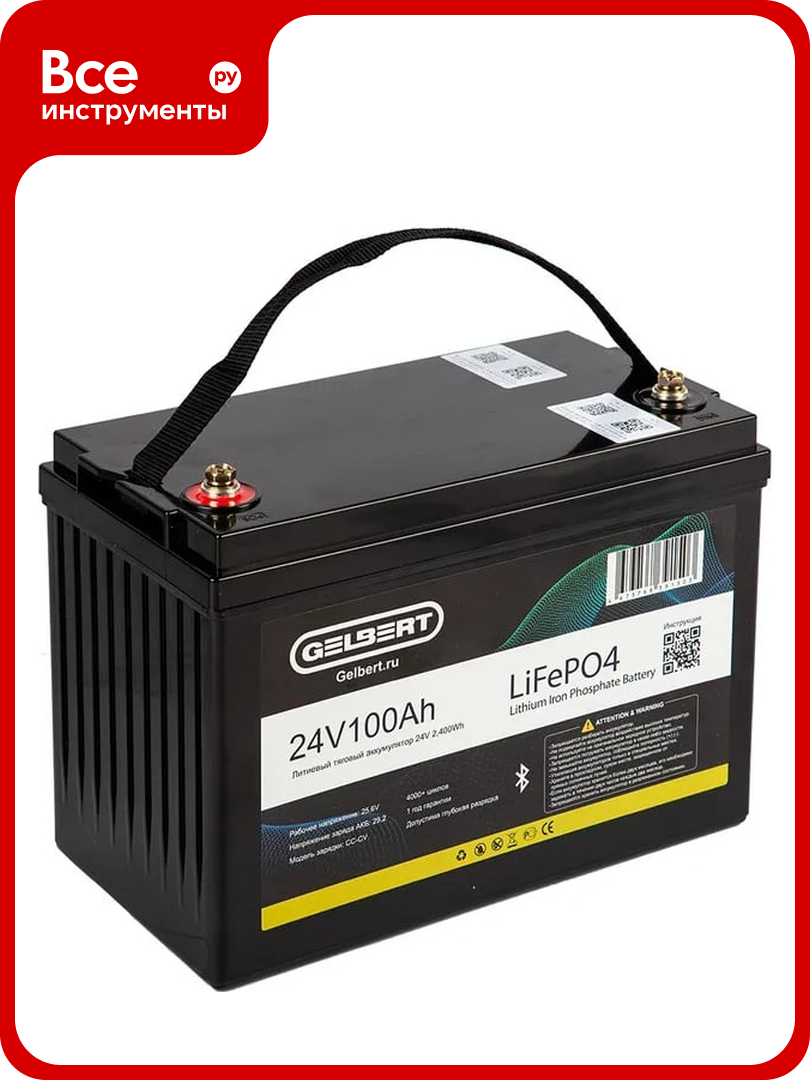 Литиевый тяговый аккумулятор Gelbert LiFePO4 (24V/100Ah/120А/2,400Wh) Bluetooth 025333: сравнение цен, характеристики, фото, актуальное наличие и цены.