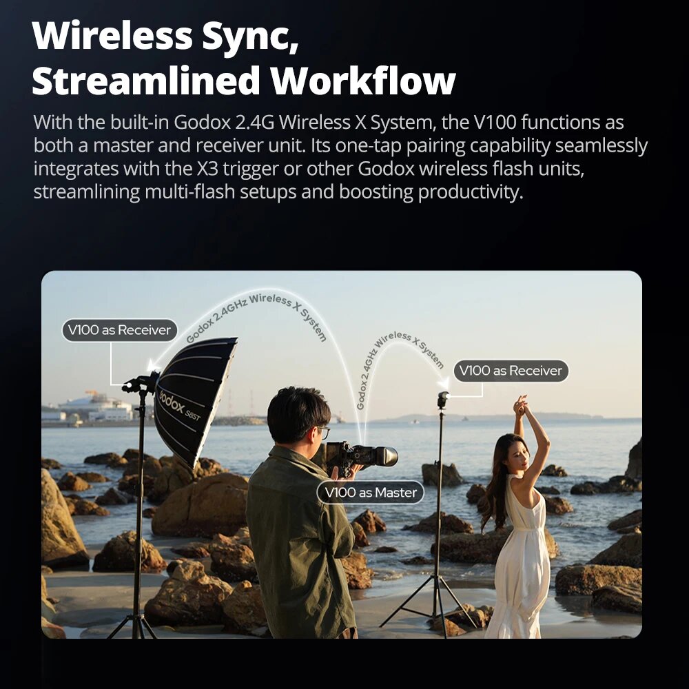 Литий-ионная вспышка Godox V100 TTL HSS для камеры с круглой головкой, 100 Вт, вспышка Speedlite с беспроводной передачей для Canon Nikon Sony Fuji, V100, for Olympus: сравнение цен, характеристики, фото, актуальное наличие и цены.