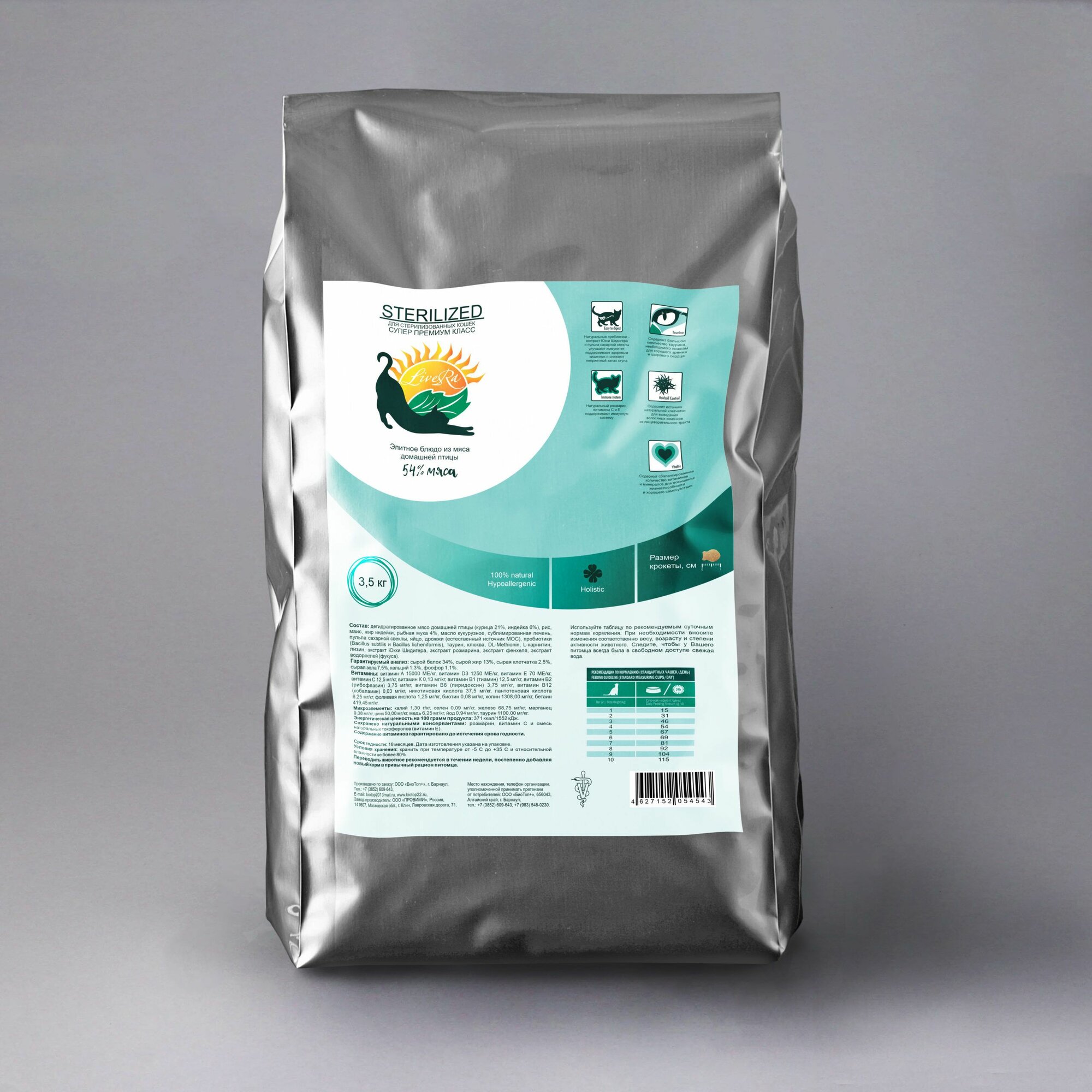 LiveRA Sterilised сухой корм для стерилизованных кошек, мясо домашней птицы. Легкоусваиваемый, полноценный рацион профессионального питания для стерилизованных кошек из мяса курицы и индейки, который создан специально для поддержания здоровья кошек, основанный на натуральных компонентах с добавлением необходимых витаминов и минералов. Сбор трав входящий в состав корма улучшает работу желудочно- кишечного тракта, поддерживает иммунитет , способствует улучшению качества шерсти и состоянию кожи. Содержит большое количество таурина для хорошего зрения и здорового сердца. Содержит источники натуральной клетчатки для выведения волосяных комочков из пищеварительного тракта.
