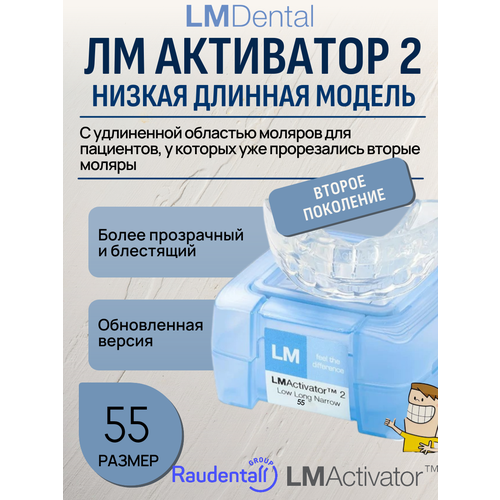 Ключевые особенности второго поколения: Усиленная защита: Специальная пластиковая вставка во фронтальной части предотвращает преждевременное повреждение аппарата зубами ребенка, значительно продлевая срок эксплуатации. Эффект открытий поколений: Более прозрачная структура силикона придает капе современный и элегантный вид, практически незаметный окружающим. Эффективность: Повышенная эластичность и оптимизированная форма обеспечивают быстрое достижение результата даже при сложных патологиях. Размерный ряд: Обширная линейка размеров от 35 до 70 позволяет подобрать идеальный вариант индивидуально каждому пациенту. Почему выбирают LM-Активатор 2? Безопасность и комфорт: Материал аппарата не вызывает аллергических реакций и дискомфорта, позволяя ребенку носить капу без неприятных ощущений.
