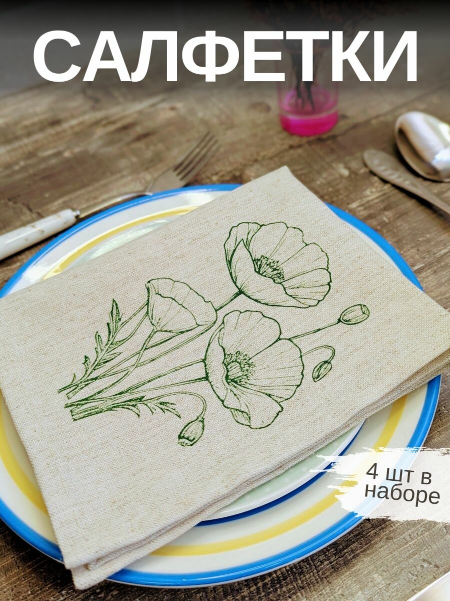 Но настоящая душа этого набора — его эксклюзивный рисунок. Вместо ярких и броских узоров мы предлагаем погрузиться в глубину и умиротворение. На каждое полотно вручную нанесен уникальный рисунок — однотонные зеленые цветы мака. Этот образ полон символики. Мак издревле ассоциируется со сном, покоем и плодородием, а выбранный изумрудно-зеленый цвет говорит о гармонии, природе и жизненной силе. Такой орнамент не кричит, а шепчет. Он создает невероятно спокойную и утонченную атмосферу, делая эти тканевые салфетки универсальными для любого стола: от утренней чашки кофе в одиночестве до торжественного ужина при свечах.