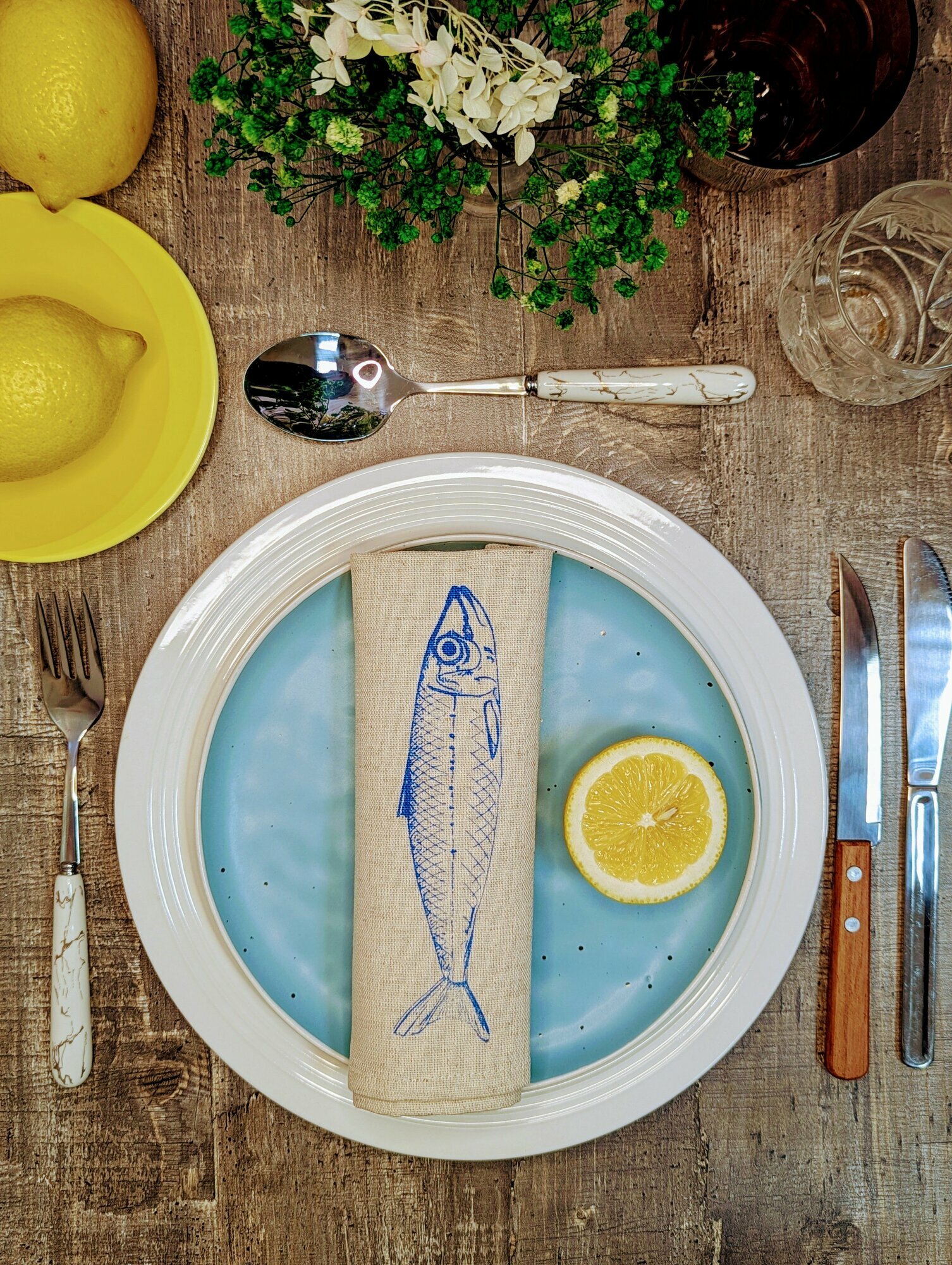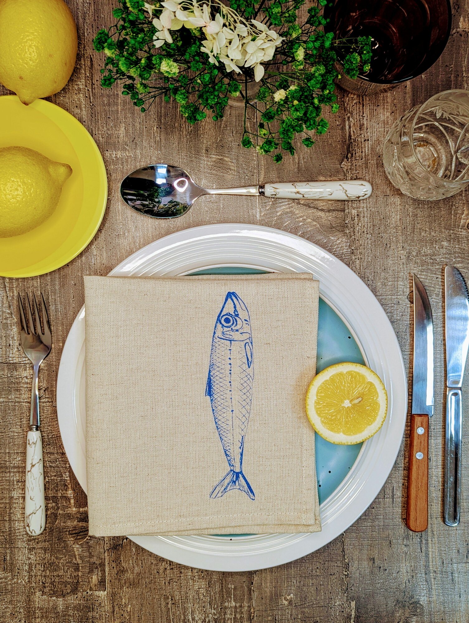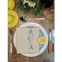 - Красивые салфетки на стол : Если вы хотите украсить свой дом и сделать каждый прием пищи особенным, этот набор станет отличным решением. Синяя рыба сардина придаст вашему столу морской шарм.