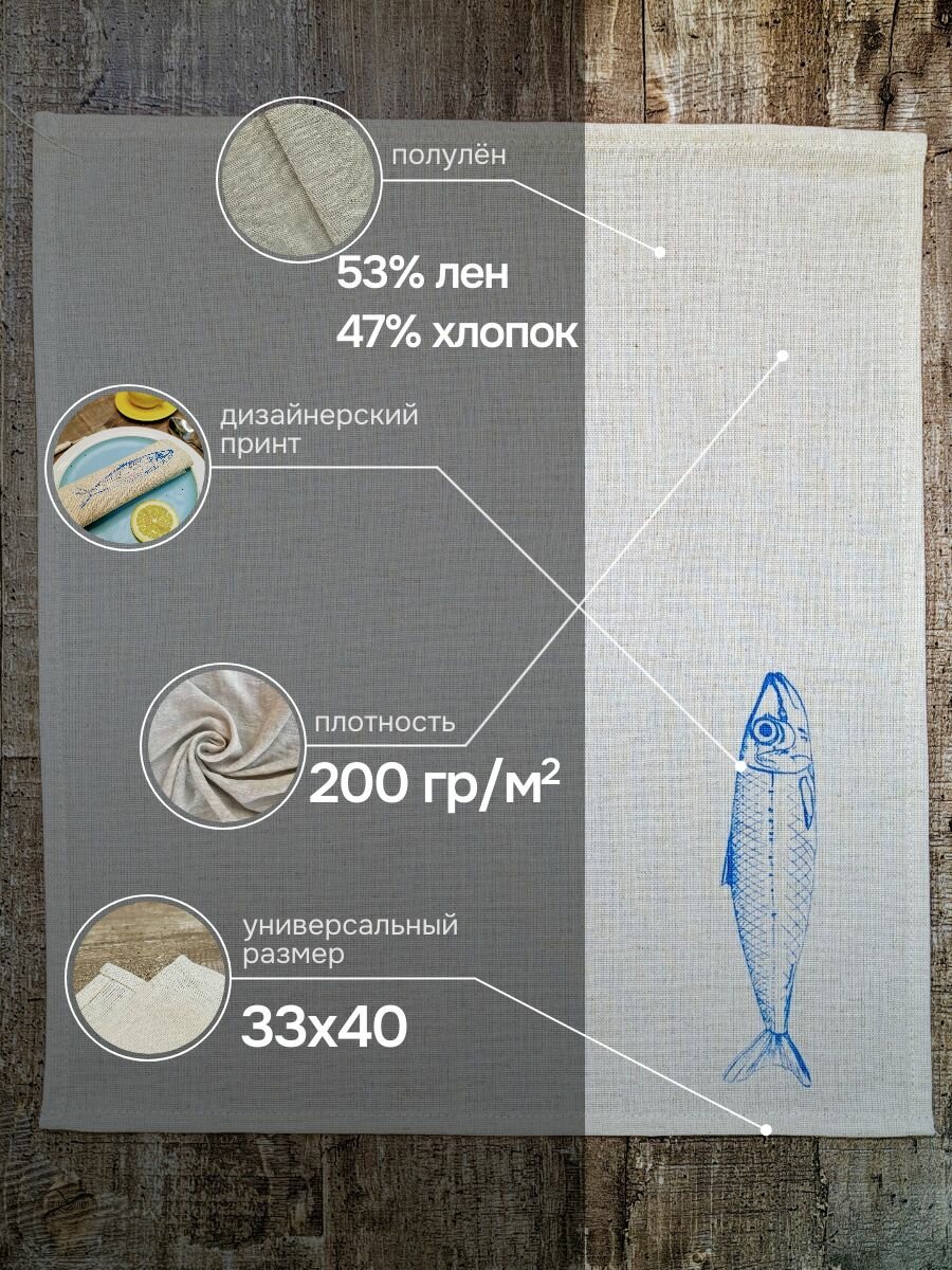 Создание уютной атмосферы за обеденным столом начинается с выбора правильных аксессуаров. Набор из 4 сервировочных салфеток из натурального льна (53% лён и 47% хлопок) с эксклюзивным рисунком в виде однотонной синей рыбы сардины — это идеальное сочетание практичности, красоты и стиля. Такие льняные салфетки станут настоящим украшением вашего интерьера и добавят особый шарм каждому приему пищи.