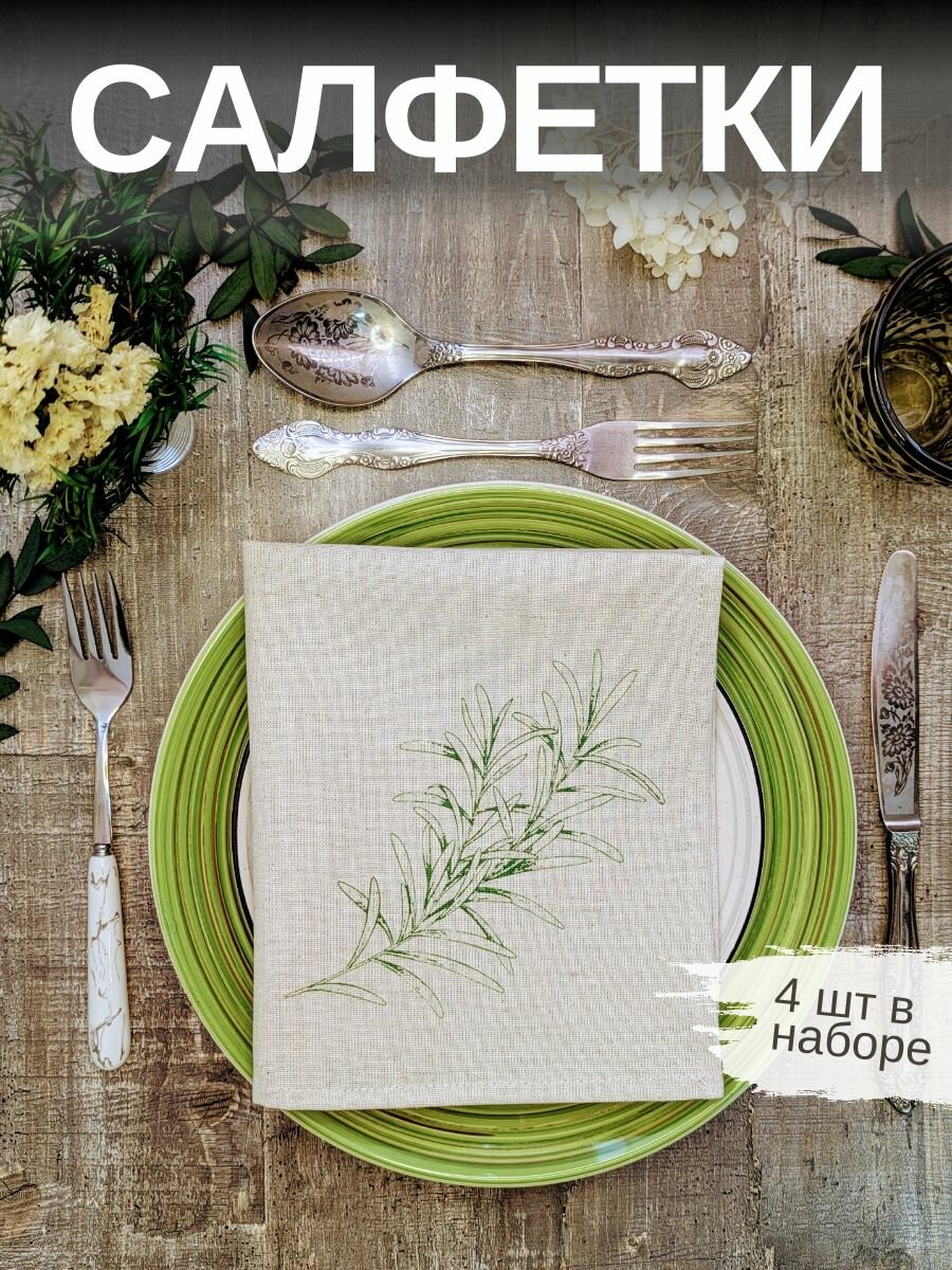 Льняные салфетки на стол, комплект 4шт. Лен, Хлопок. Подарочный сервировочный набор «Зеленый розмарин». 33×40см: сравнение цен, характеристики, фото, актуальное наличие и цены.