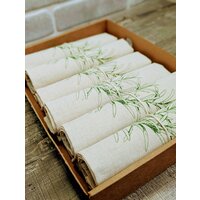 Добавьте ноту свежести и уюта в ваш дом с набором из шести красивых салфеток на стол, выполненных из натурального льна и хлопка (53% лён, 47% хлопок). Каждая салфетка сервировочная на стол украшена уникальным рисунком однотонной веточки розмарина, который привносит в интерьер атмосферу средиземноморского тепла. Этот набор — не просто аксессуар, а настоящее произведение искусства, созданное для тех, кто ценит качество, экологичность и внимание к деталям.