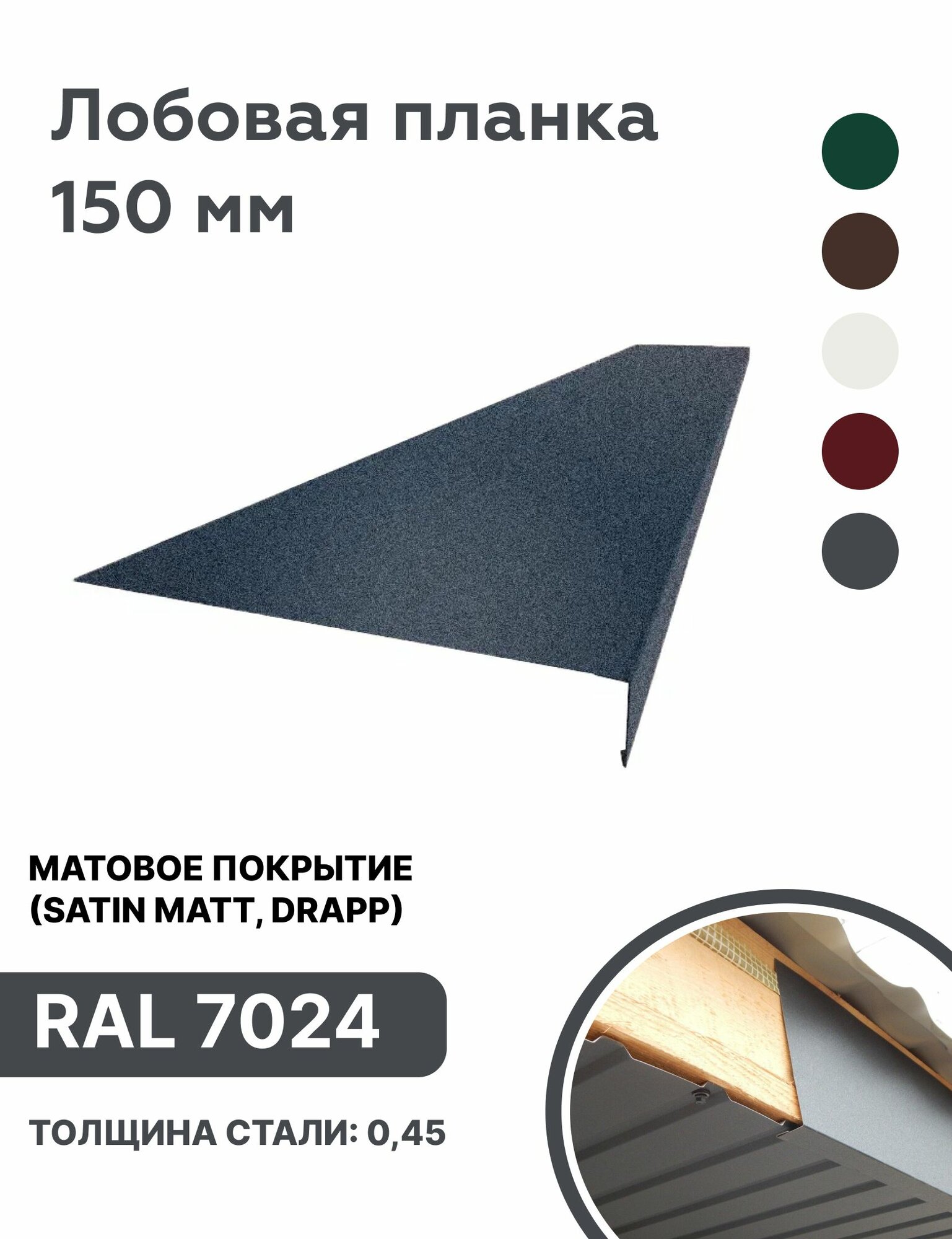 Лобовая планка 150мм матовая (Satin matt, drap), RAL 7024 серый, для отделки кровельного свеса. 150мм — 2000мм 10шт: сравнение цен, характеристики, фото, актуальное наличие и цены.