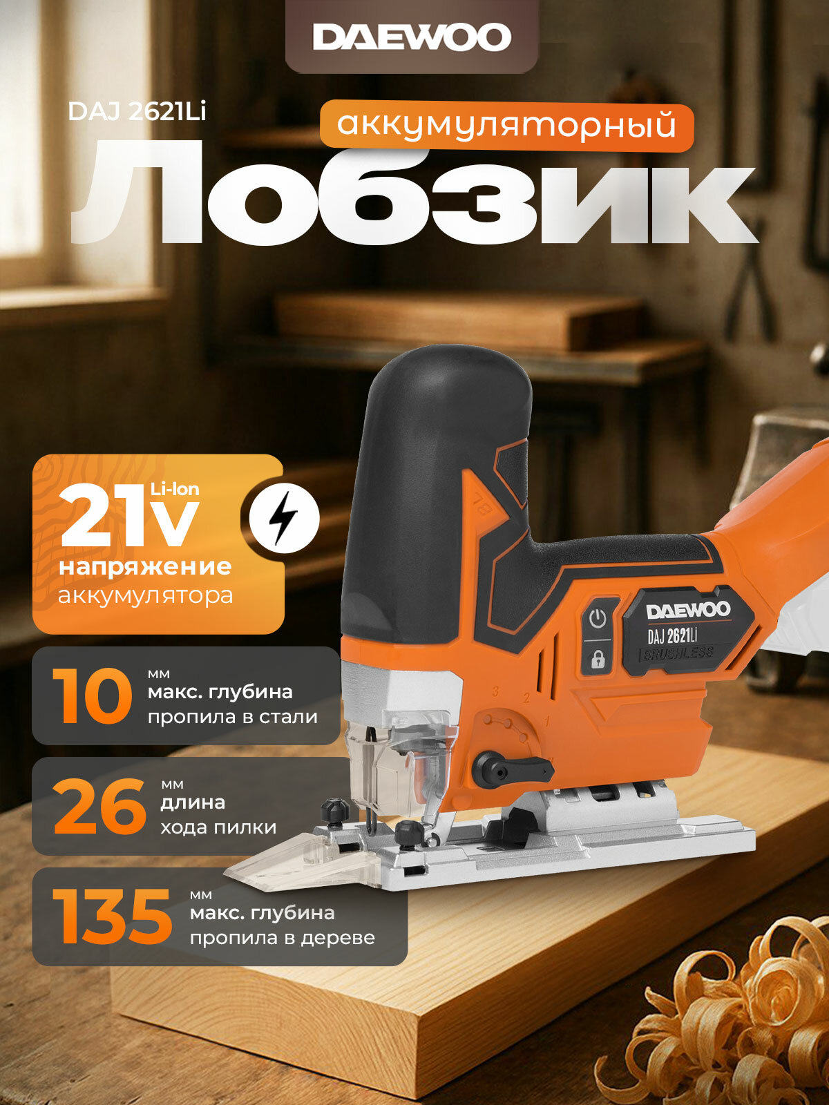 Купить Лобзик аккумуляторный DAEWOO DAJ 2621Li без АКБ и ЗУ с доставкой по всей России. Лобзик аккумуляторный DAEWOO DAJ 2621Li без АКБ и ЗУ: сравнение цен, характеристики, фото, актуальное наличие и цены.