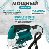 Регулировка наклона подошвы инструмента дает вам большую гибкость при резке под разными углами. Электрический лобзик работает от сети, что позволяет вам использовать его длительное время без перерывов.