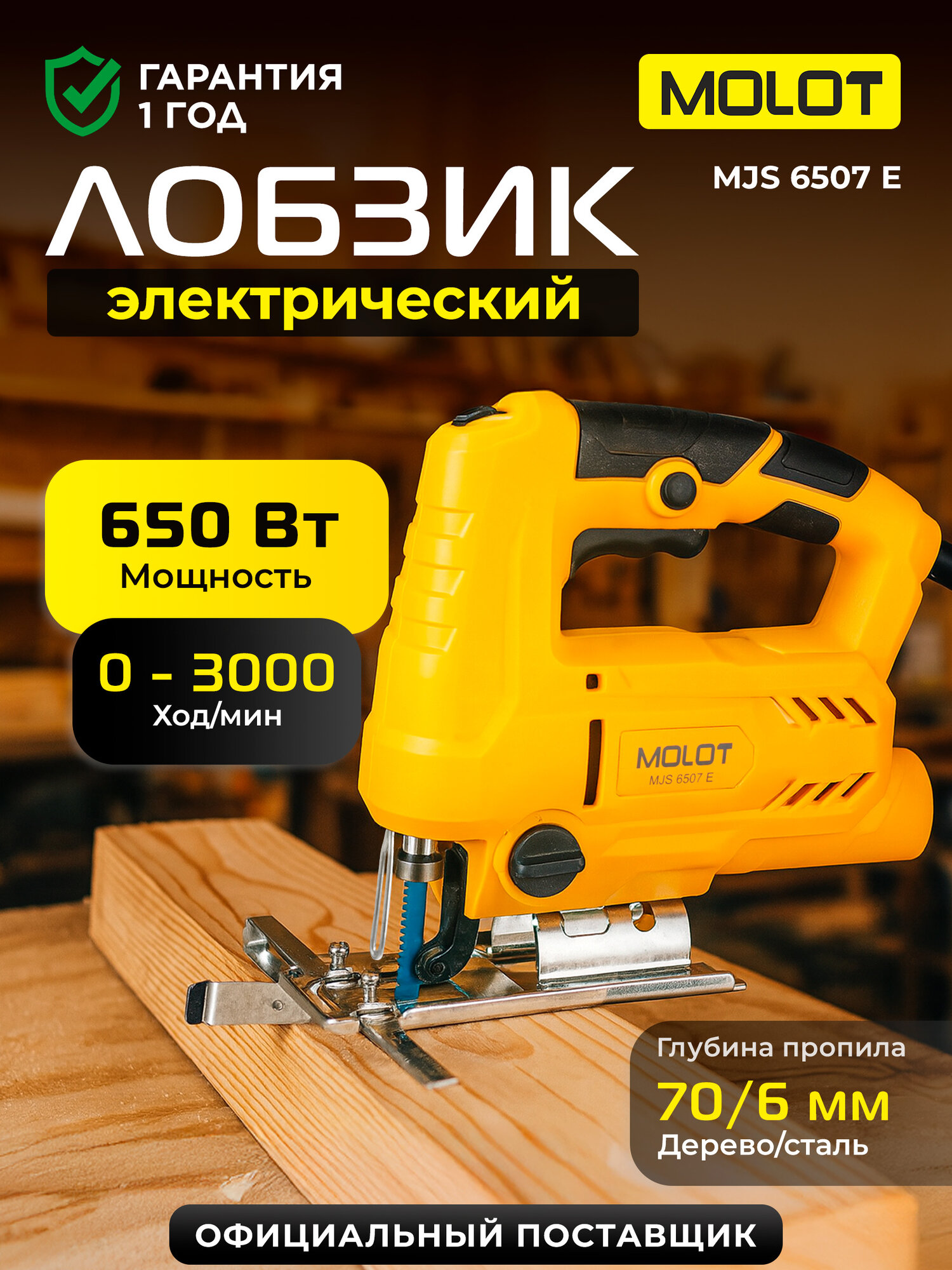 | Комплектация | Лобзик, пильное полотно по дереву, параллельная направляющая, шестигранный ключ, инструкция по эксплуатации |