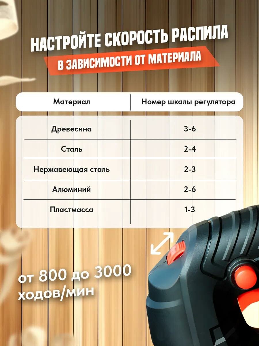 | Частота движения пилки (макс.) | 3100 ходов/мин |