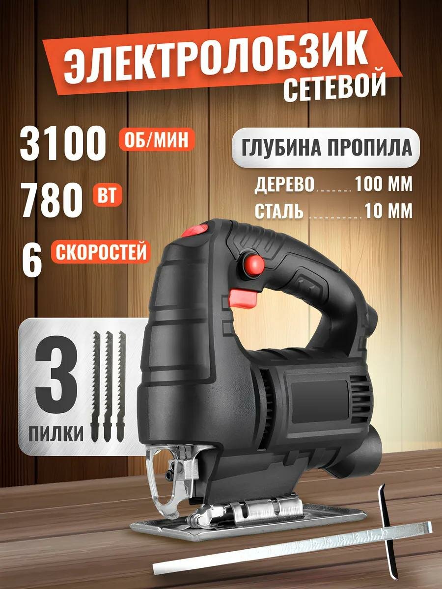 | Комплектация | Лобзик, 3 пилки, шестигранник, упор |
