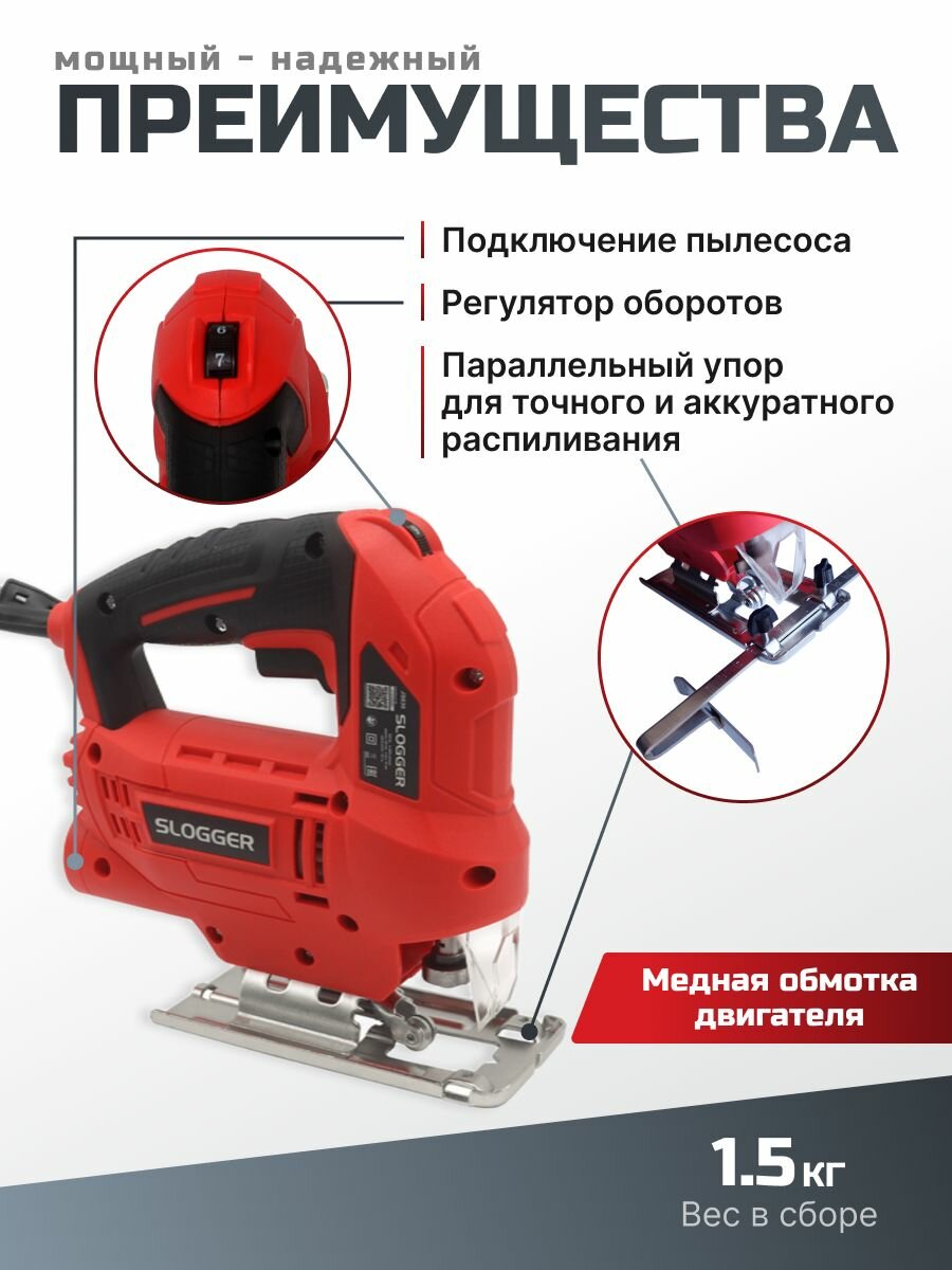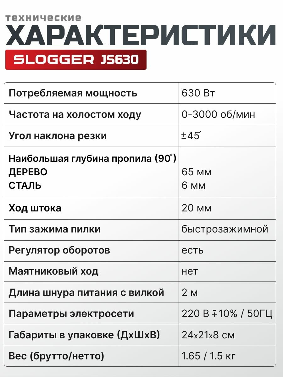 Купить Лобзик электрический Slogger JS630, 630Вт, 65мм, комплект запасных щеток с доставкой по всей России.