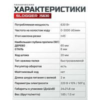 Лобзик электрический Slogger JS630, 630Вт, 65мм, комплект запасных щеток