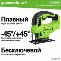 Купить Лобзик Greenworks GD24JS90, 24V, б/щет, LED,1х4Ач, ЗУ, 3601707CUB с доставкой по всей России. Лобзик Greenworks GD24JS90, 24V, б/щет, LED,1х4Ач, ЗУ, 3601707CUB: сравнение цен, характеристики, фото, актуальное наличие и цены.