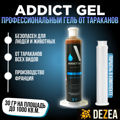 ADDICT GEL (Аддикт гель) - готовая к применению гель-приманка для тараканов. Высокоэффективное инсектицидное средство для контроля популяции тараканов. Имеет идеальную привлекательность. Обладает практически мгновенным действием, запуская при этом цепную реакцию в колонии. Первые насекомые погибают через 1-2 часа. Начиная с 3 дня наблюдается массовая гибель членов колонии. Гель практически не имеет запаха. Подходит для использования в жилых и чувствительных помещениях. Консистенция густая. При выдавливании капля сохраняет свою форму и не растекается на поверхности. Гель отличается высокой экономичностью.
