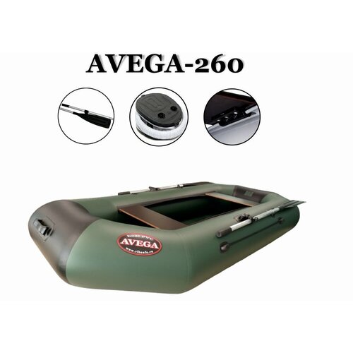 Лодка AVEGA 260 имеет зеленый и черный цвет, что делает ее привлекательной и заметной на воде.