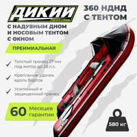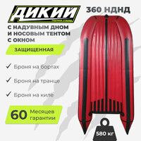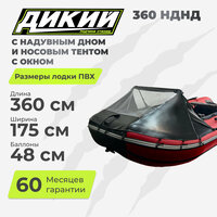 Купить Лодка Дикий 360 НДНД с носовым тентом, красная, надувное дно, серая, 3 места, мотор 20 л. с, высота борта 47 см, грузоподъемность 650 кг с доставкой по всей России.
