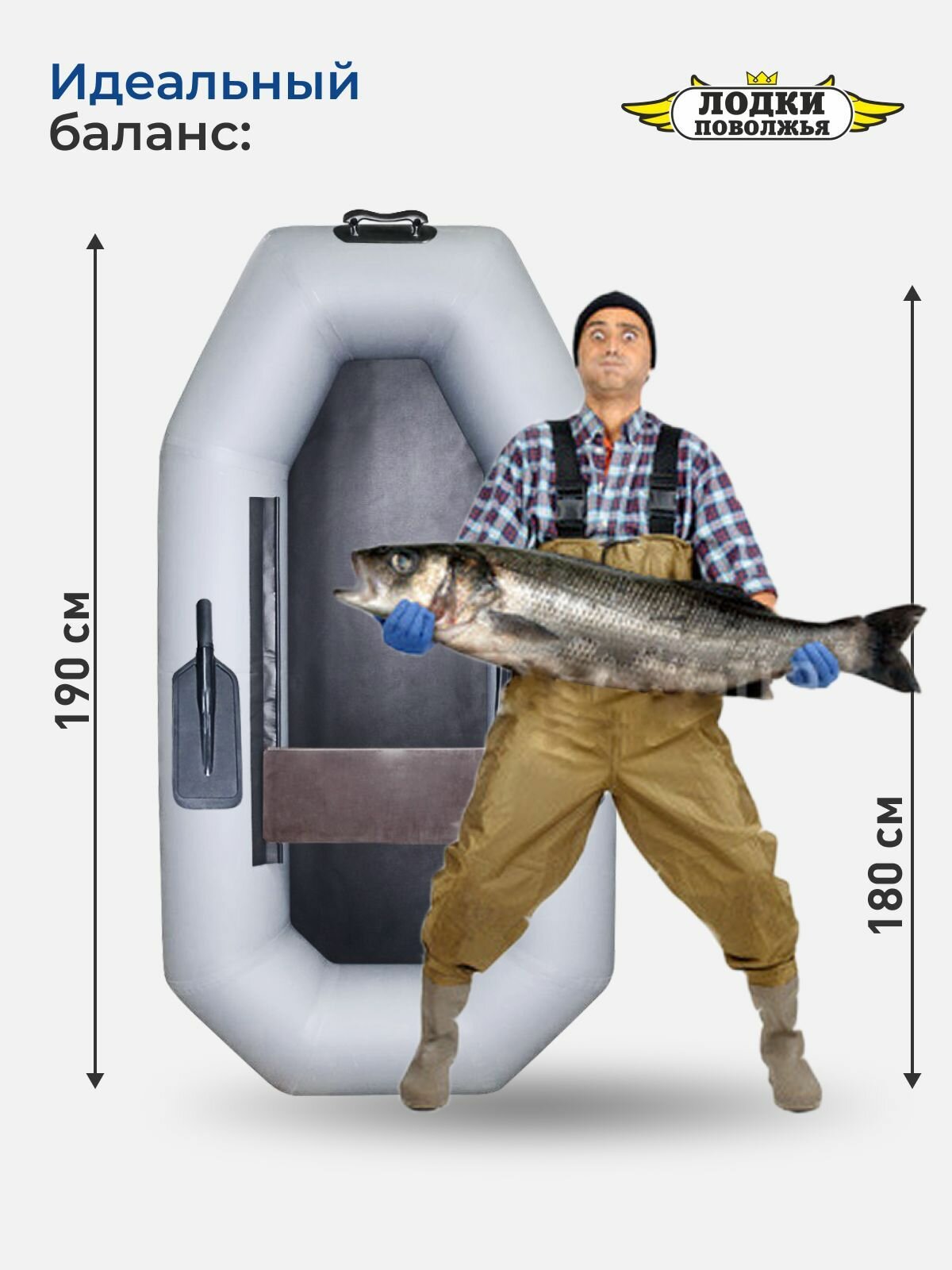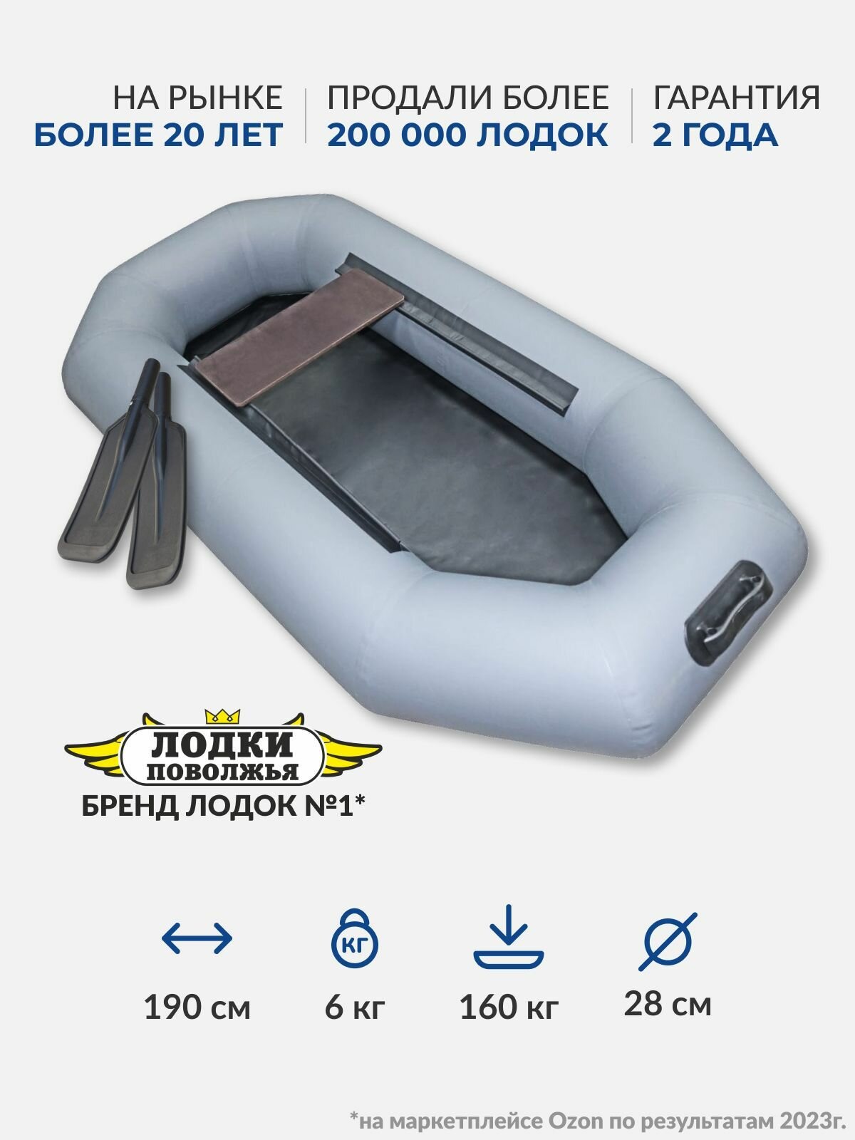 Купить Лодка ПВХ надувная для рыбалкиЛодки Поволжья S-190 гр (гребки) + сплошной ПОЛ слань в комплекте, одноместная, серая с доставкой по всей России.