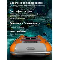 ✔Надувное дно низкого давления — НДНД. Лодка полностью готова к использованию за 20 минут работы ножной помпой (или до 10 минут — электрическим насосом). Надувное дно уменьшает осадку лодки и позволяет легко проходить пороги и мелководные участки. При движении надувное дно не прогибается, обеспечивая хорошую мореходность и смягчает (амортизирует) удары волн, повышая комфорт пассажиров. Являясь дополнительным воздушным отсеком, дно увеличивает грузоподъёмность и надёжность лодки.