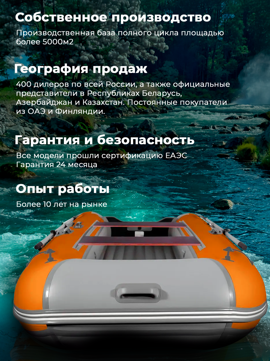 ✔Качество и надёжность. Материал лодки — пятислойная ткань ПВХ. Деревянные элементы созданы из водостойкой берёзовой фанеры.