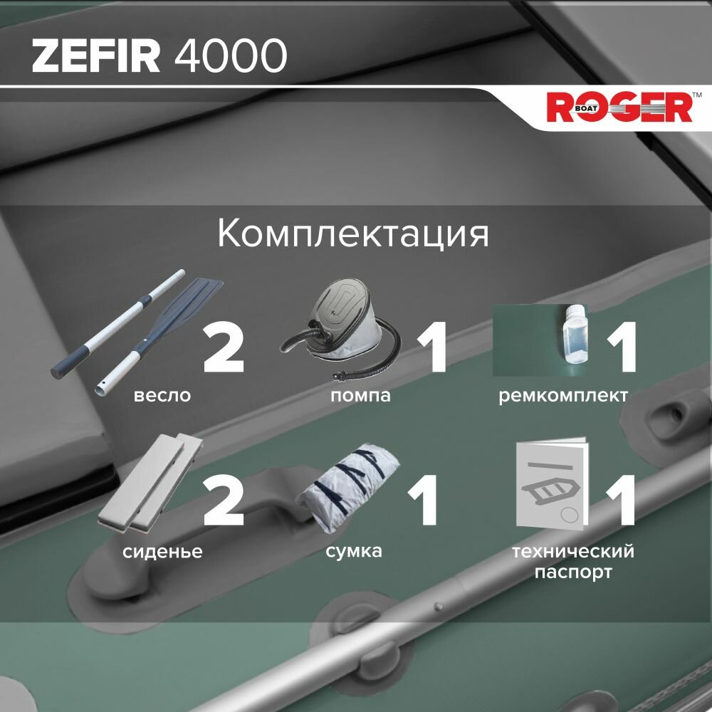 Лодка надувная ПВХ под мотор ROGER Zefir 4000, лодка роджер НДНД с ковриком призма (зеленый-серый комбинированный): сравнение цен, характеристики, фото, актуальное наличие и цены.