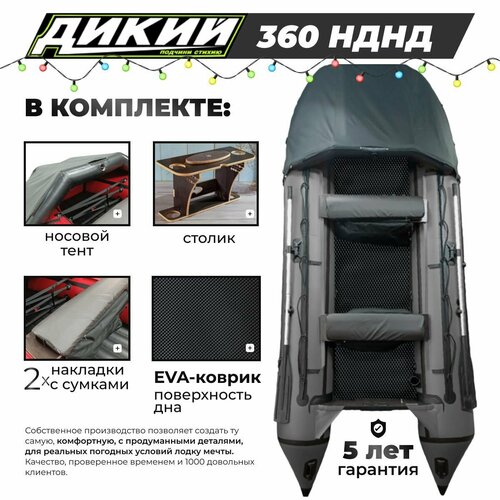 Лодка ПВХ ДИКИЙ 360 НДНД серый с ЭВА-ковром, носовым тентом под мотор для 3х человек: сравнение цен, характеристики, фото, актуальное наличие и цены.