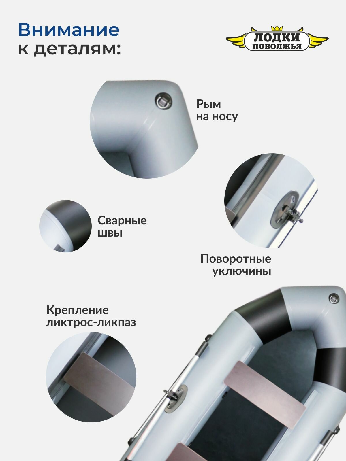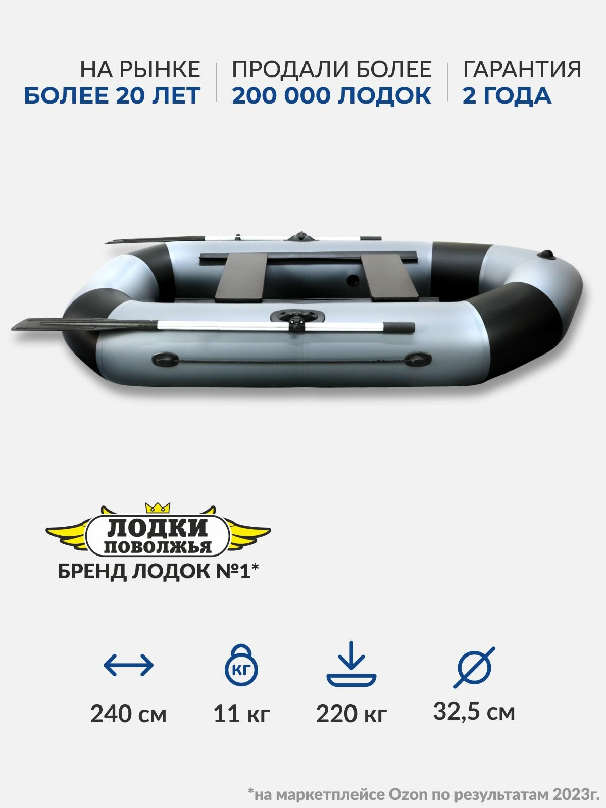 Купить Лодка надувная для рыбалки ПВХ Лодки Поволжья R-240 + реечная слань в комплекте, двухместная гребная, серо-черная с доставкой по всей России.