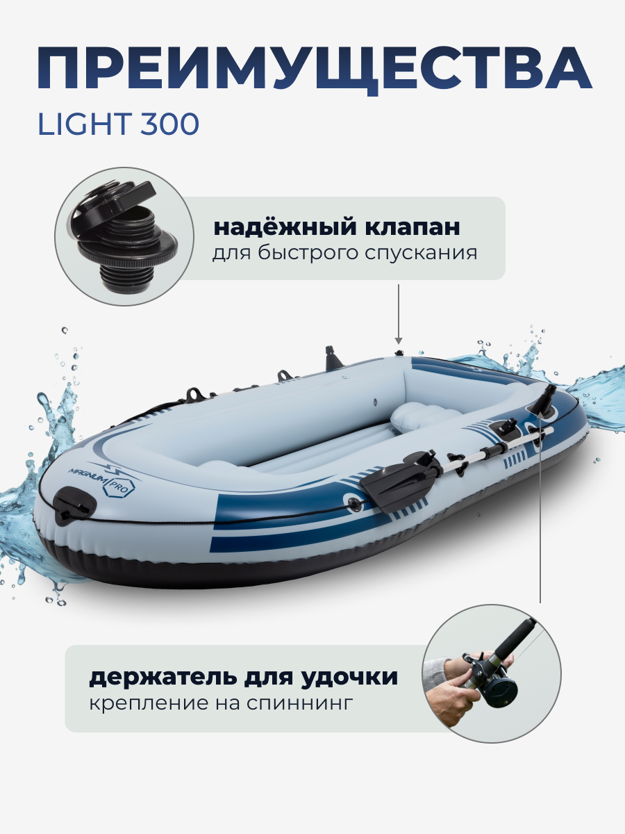 Купить Лодка Magnum PRO Light 300, ПВХ, надувная, для рыбалки, трехместная, цвет серый с доставкой по всей России.
