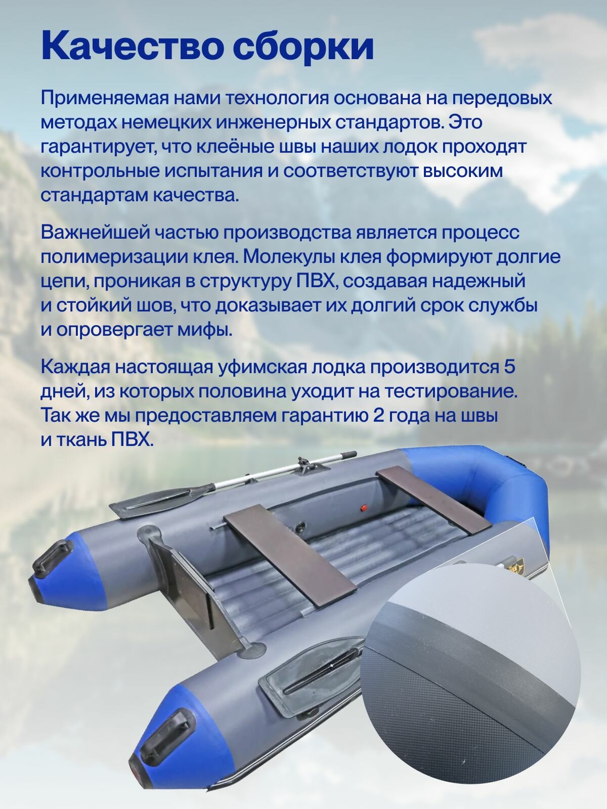 Во время накачивания лодки с надувным дном производитель рекомендует соблюдать давление не более 0,1-0,2 Бар. Надувное дно в лодке необходимо наполнить до принятия формы. Это необходимо для сохранения прочности капроновых нитей, которыми сшиты лодочные перегородки. Производитель самостоятельно проверяет прочность шва под давлением 0,4 Бар. В случае излишне поданного давления и перекачивания лодочного дна, производитель снимает ответственность на гарантийный случай.