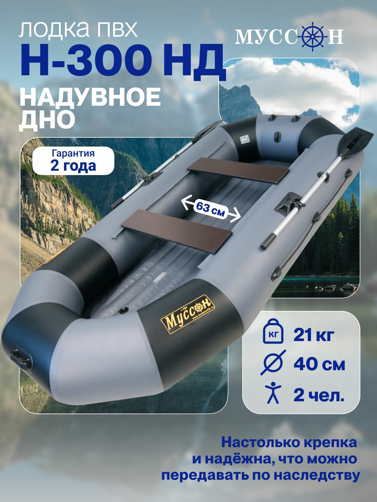 Лодка надувная для рыбалки ПВХ Муссон H-300 НД под мотор, двухместная гребная, серо-черная: сравнение цен, характеристики, фото, актуальное наличие и цены.