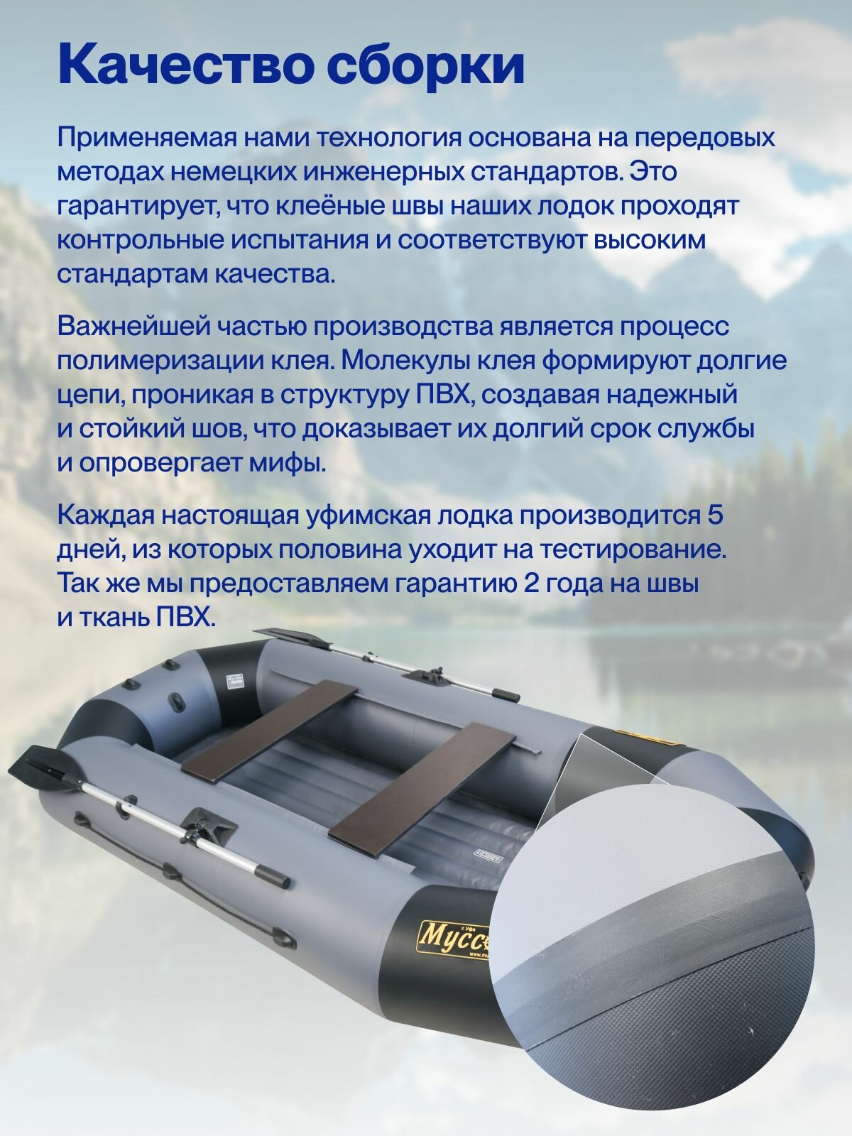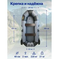 Купить Лодка надувная для рыбалки ПВХ Муссон H-300 НД под мотор, двухместная гребная, серо-черная с доставкой по всей России.