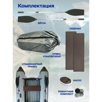 В комплекте для гребного сплава поставляются весла сборной конструкции, которые состоят из пластиковой лопасти и алюминиевой ручки. Для фиксации весел в рабочем режиме предусмотрены поворотные уключины, для стояночного положения – крепления.
