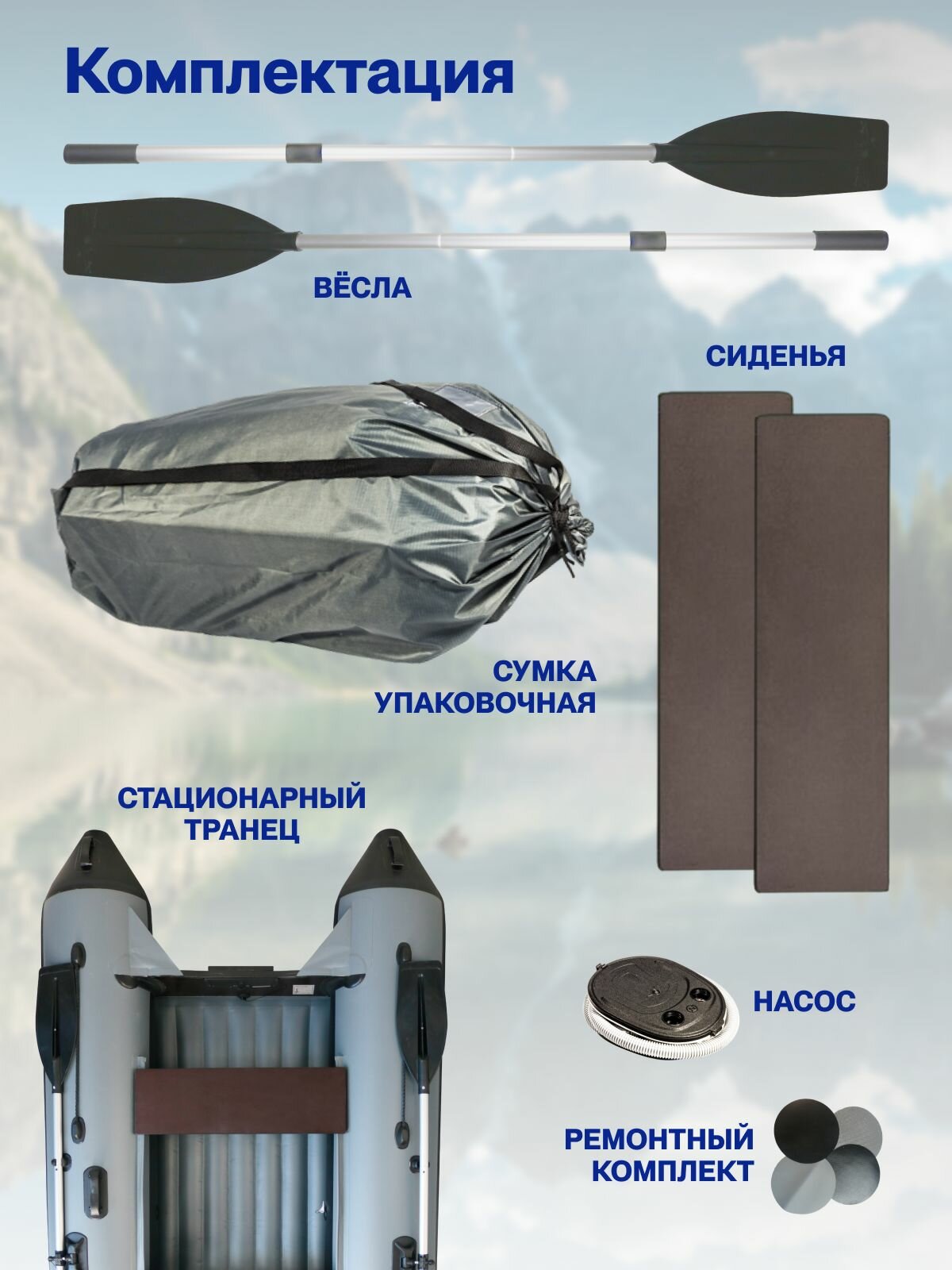 Для пассажиров предусмотрены две лавки (банки) на универсальном креплении ликтрос-ликпаз. Сиденья можно передвигать, а на креплении подвесить лодочные аксессуары: подставки для удочки, посуды или эхолота, столик, кресло и прочее.