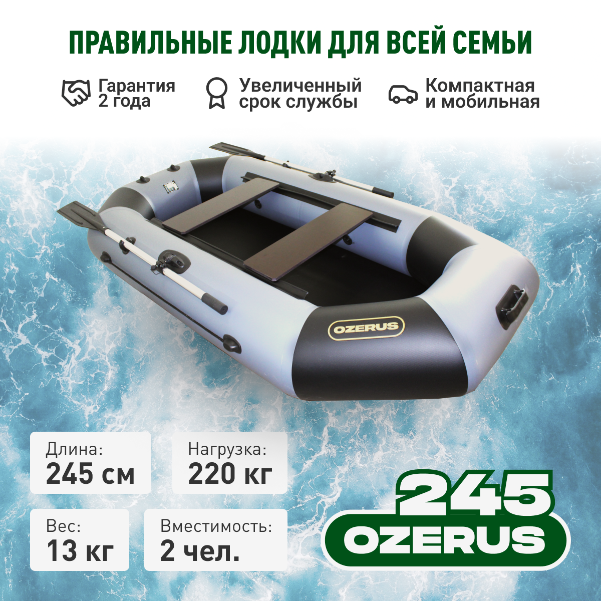 Лодка ПВХ по мотор надувная для рыбалки OZERUS 245 + слань жесткий пол в комплекте, гребная двухместная , крепления под транец, серо-черная: сравнение цен, характеристики, фото, актуальное наличие и цены.