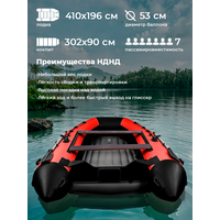 Лодка ПВХ под мотор River Boats RB 410 НДНД черно-красная надувная для рыбалки