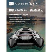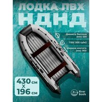 Купить Лодка ПВХ под мотор River Boats RB 430 НДНД черно-серая надувная для рыбалки с доставкой по всей России.