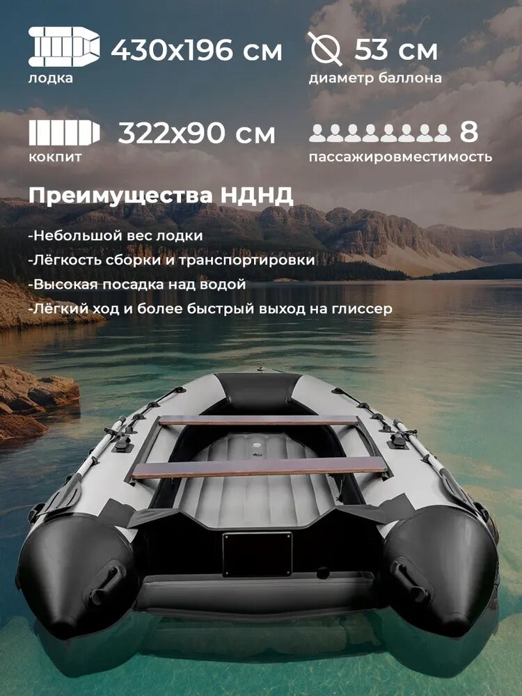 Лодка ПВХ под мотор River Boats RB 430 НДНД черно-серая надувная для рыбалки: сравнение цен, характеристики, фото, актуальное наличие и цены.