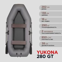 YUKONA 280 GT - лодка пвх надувная гребная для рыбалки. Это надежное и доступное средство для рыбалки и передвижения по воде. Лодка двухместная под мотор укладывается в сумку. В комплектацию входит навесной транец и уже установленные фиксаторы для его крепления.