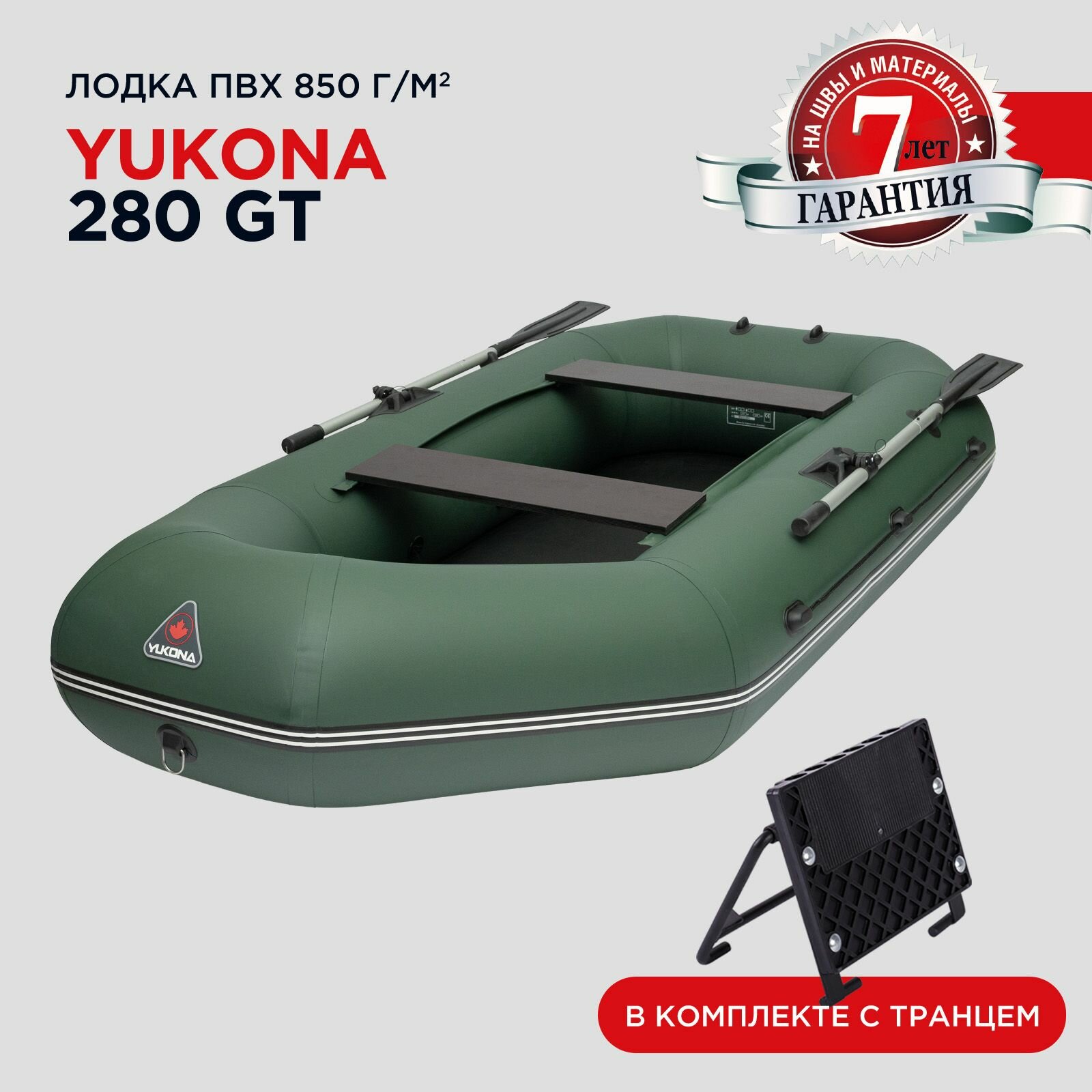 YUKONA 280 GT - лодка пвх надувная гребная для рыбалки. Это надежное и доступное средство для рыбалки и передвижения по воде. Лодка двухместная под мотор укладывается в сумку. В комплектацию входит навесной транец и уже установленные фиксаторы для его крепления.