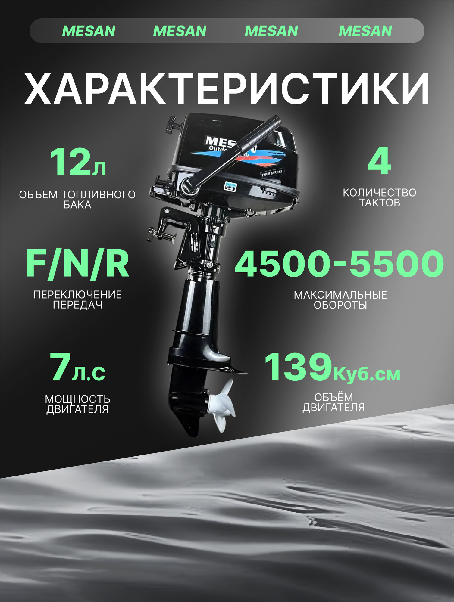Лодочный мотор Mesan 6.5 л. с,4-х тактный, бензиновый: сравнение цен, характеристики, фото, актуальное наличие и цены.