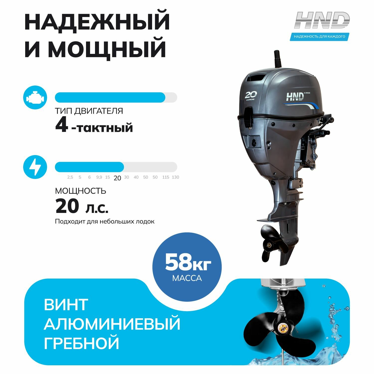 Представляем 4-тактный подвесной лодочный мотор HND 20 FHS номинальной мощности 20 лошадиных сил и рабочим объемом 345 см³. Мощный, но легкий подвесной мотор HND 20 FHS обеспечивает высочайшую производительность. 20-сильный мотор - отличный выбор для многих лодок.